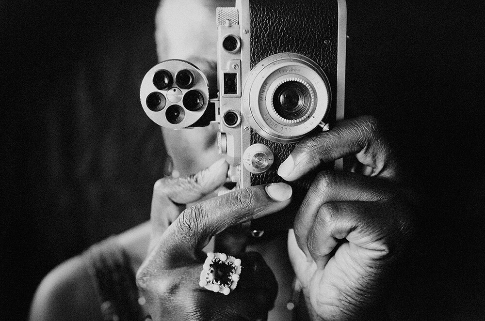 A portrait of strength and focus — a woman holding a camera, capturing the world through her own lens. A tribute to creative vision and representation.